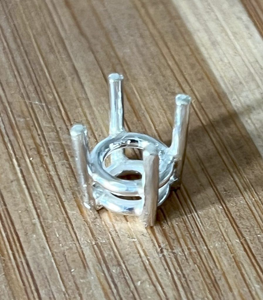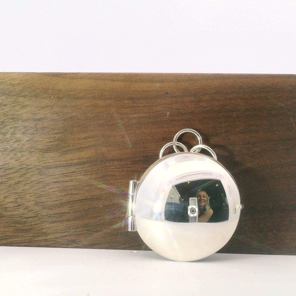 In term 3 much of the focus was on stone setting. There was a claw set ring using a tube to create the claws then we created a double gallery claw setting from scratch – so small and so many soldering operations! We used pre-made castings to create two stone set pieces – a ring and pendant. The mirror finish locket was a very technically difficult one with the hinge, the clasp and that mirror polish. Louise (AtTheBench) took the photos and included herself in it :-).