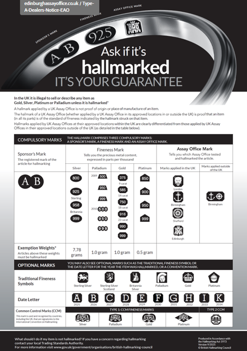 (For silver, the exemption weight is 7.78gms. However, even pieces of this weight can be hallmarked if desired.)